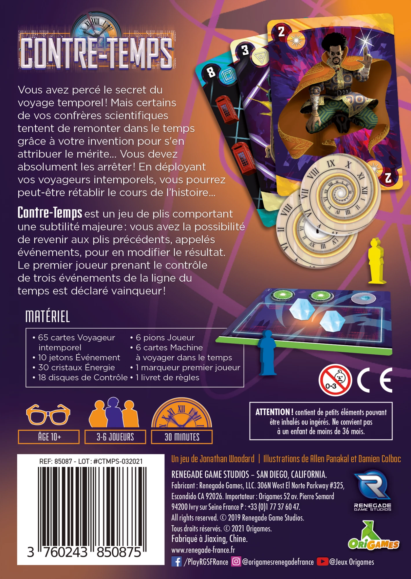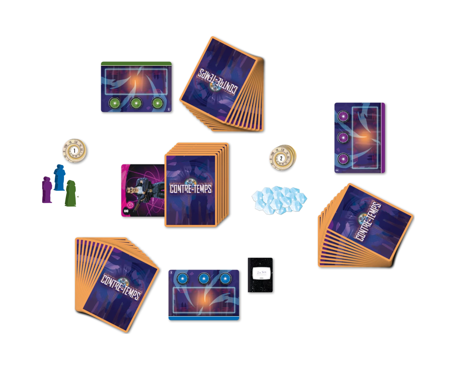 La particularitĂ© de Contre-Temps, c’est qu’Ă la fin de chaque manche, vous pouvez remonter le cours de la partie, et revenir sur des plis prĂ©cĂ©demment jouĂ©s, pour tenter d’en modifier le rĂ©sultat Ă la manche suivante.