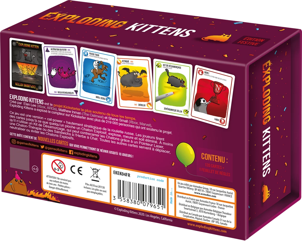 Retrouvez Exploding Kittens dans cette nouvelle édition du jeu avec des chats le plus célèbre. Vous pourrez y jouer de 2 à 10 grâce à l’App incluse.