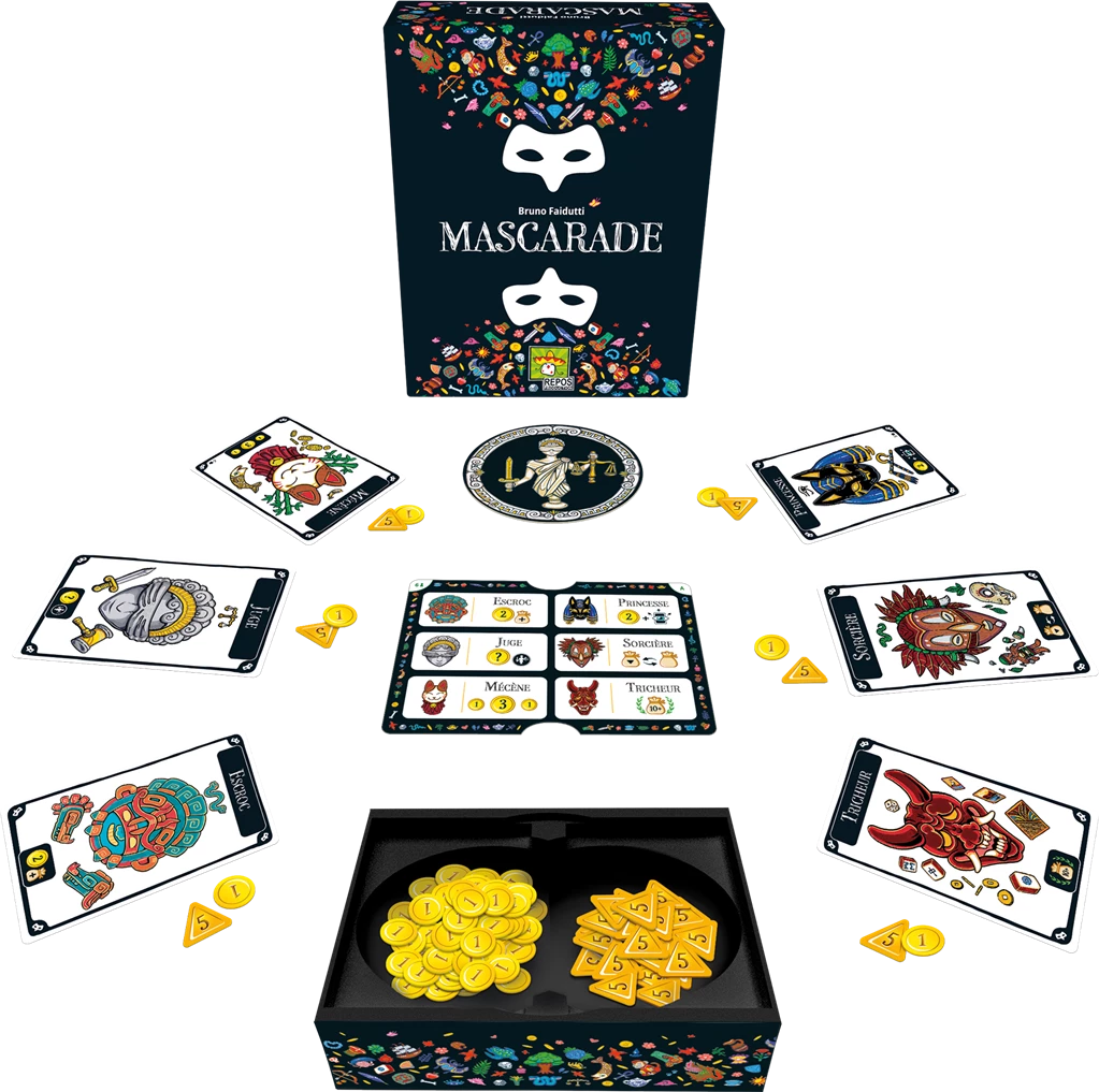 Le premier qui obtient 13 pièces, grâce aux pouvoirs des masques, remporte la partie.