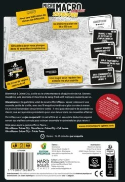 Showdown est le quatriĂšme volet de la sĂ©rie MicroMacro. Venez y dĂ©couvrir une nouvelle partie de la ville, avec ses 16 enquĂȘtes inĂ©dites et plus corsĂ©es Ă mener. Ce jeu est indĂ©pendant des premiers volets : il nâest pas nĂ©cessaire de possĂ©der ou dâavoir jouĂ© aux Ă©pisodes prĂ©cĂ©dents pour vous lancer dans ces nouvelles affaires !
