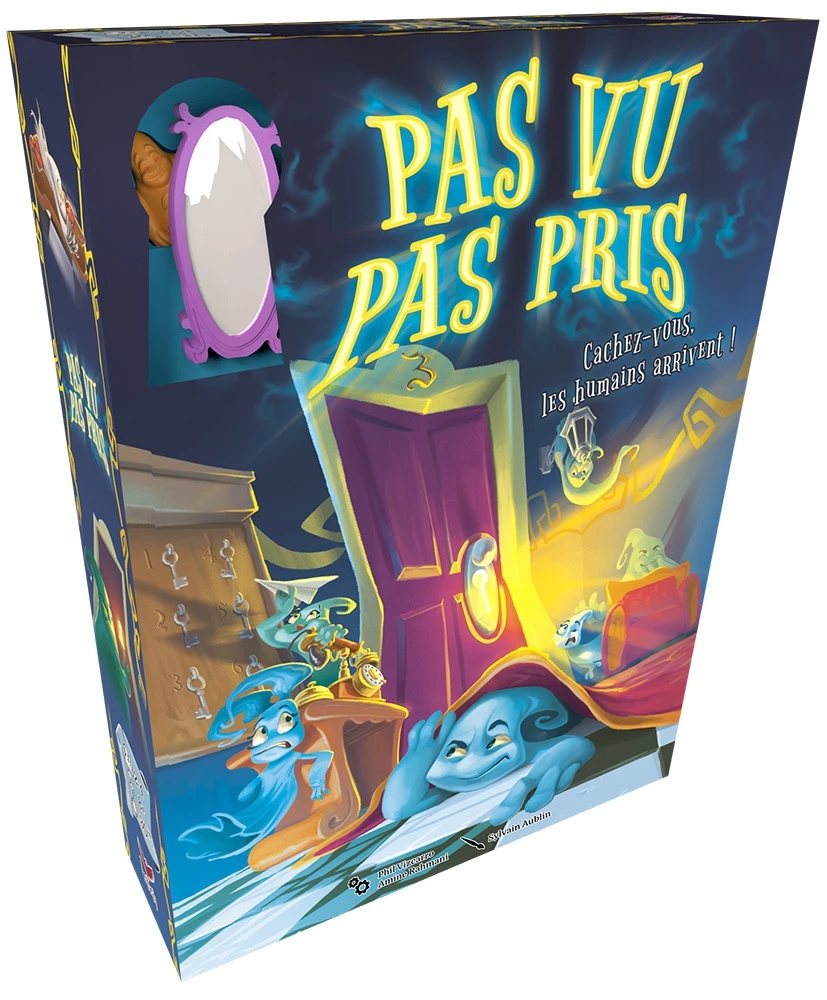 Faites traverser le hall d’hĂ´tel au plus grand nombre possible de vos fantĂ´mes. Mais attention, les humains vous observent par le trou de la serrure. DĂ©placez les meubles de la pièce pour vous cacher derrière et tentez d’attirer les regards sur les cachettes adverses !Chacun leur tour les joueurs piochent une carte DĂ©placement et bougent un meuble, si leur carte le permet, pour prĂ©parer des cachettes. Puis tous en mĂŞme temps, ils font progresser leurs fantĂ´mes dans le hall, chacun vers sa sortie. Une fois les dĂ©placements effectuĂ©s, l’un des joueurs choisit le cĂ´tĂ© oĂą placer la serrure et il lance le dĂ© pour dĂ©terminer son emplacement exact. Puis les joueurs regardent au travers : tous les fantĂ´mes visibles retournent Ă leur cĂ´tĂ© de dĂ©part !