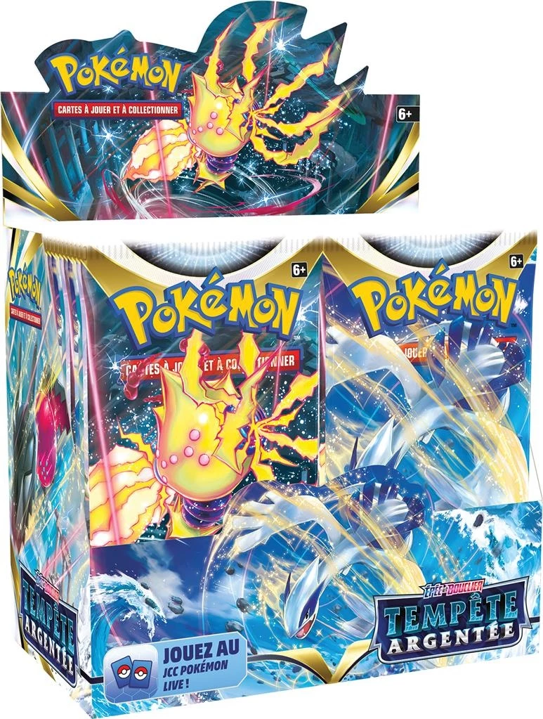Chaque booster Pokémon Pokémon Epée et Bouclier Tempête Argentée contient 10 cartes. Un inquiétant grondement se fait entendre au loin… Lugia-VSTAR émerge des profondeurs de l’océan et répond à l’appel ! Des terres inexplorées attendent d’être découvertes aux côtés de Goupix d’Alola-VSTAR, tandis que Majaspic, Zarbi et Mysdibule se joignent à l’expédition en tant que Pokémon-VSTAR. Un combat légendaire est sur Le point d’éclater alors que Regieleki-VMAX et Regidrago-VSTAR sortent tout juste de leur torpeur. Découvrez de puissantes amitiés dans la Galerie des Dresseurs, et place à l’aventure avec l’extension Épée et Bouclier – Tempête Argentée. Un combat légendaire est sur le point d’éclater alors que Regieleki-VMAX et Regidrago-VSTAR sortent tout juste de leur torpeur. Découvrez de puissantes amitiés dans la Galerie des Dresseurs, et place à la grande aventure avec l’extension Épée et Bouclier – Tempête Argentée du JCC Pokémon !