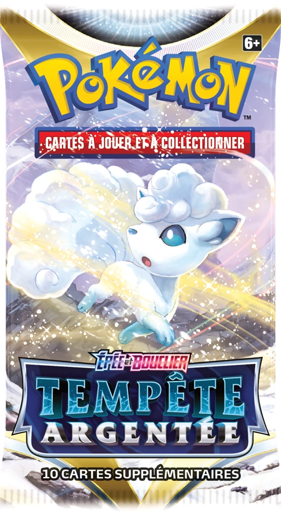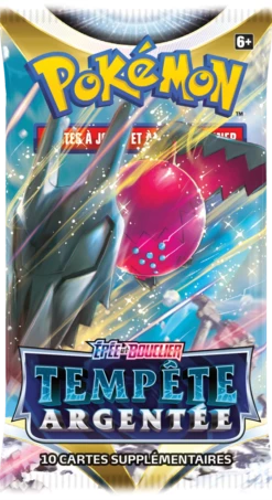Un booster Épée et Bouclier : Tempête Argentée contient 10 cartes aléatoires en français du JCC Pokémon.