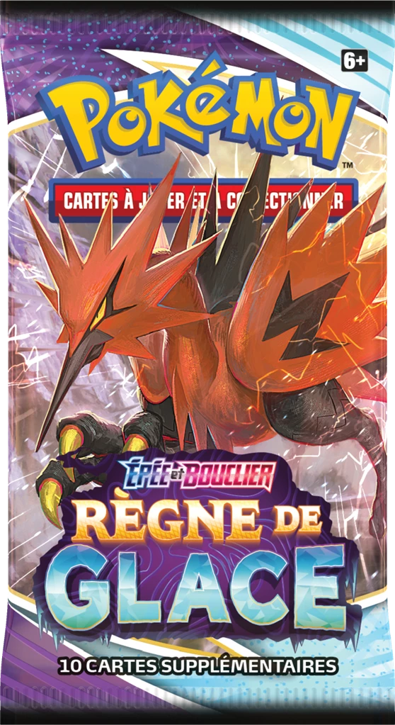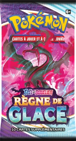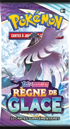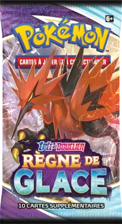 Prenez l’avantage avec des Pokémon issus des terres gelées dont les puissants Sylveroy Cavalier du Froid-VMAX et Sylveroy Cavalier d’Effroi-VMAX, ainsi que les formes de Galar d’Artikodin, Électhor et Sulfura dans Épée et Bouclier – Règne de Glace ! Fantômes angoissants, blizzards hurlants et batailles sauvages propulsent votre stratégie Pokémon dans des royaumes jusqu’alors inconnus, faits de nouveaux pouvoirs et de nouvelles possibilités. Avec l’extension Épée et Bouclier – Règne de Glace du JCC Pokémon, allez de l’avant malgré l’opposition fantomatique, et régnez en maître sur les contrées spectrales et enneigées.