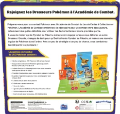 Préparez-vous pour un combat Pokémon avec l’Académie de Combat du Jeu de Cartes à Collectionner Pokémon. L’Académie de Combat contient tout le nécessaire pour un combat entre deux joueurs, notamment des guides détaillés pour utiliser les decks facilement dès la première partie.