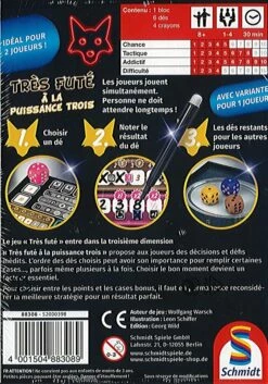 Dans Très Futé à la Puissance Trois, votre objectif est d’enchaîner les combos de la manière la plus efficace possible et de choisir les meilleurs dés pour maximiser votre score. Le hasard des dés vous oblige à prendre des décisions réfléchies, à ne pas manquer de bonnes opportunités.