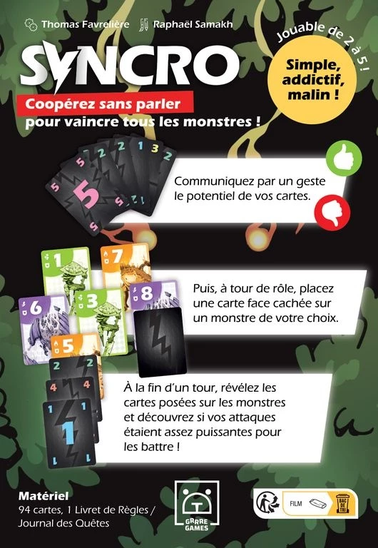 SYNCRO est un jeu dans lequel vous n’avez pas le droit de communiquer avec vos partenaires de jeu. Synchronisez-vous avec les personnes de votre équipe, gérez votre main de cartes Sort afin de détruire tous les monstres de chaque niveau.
