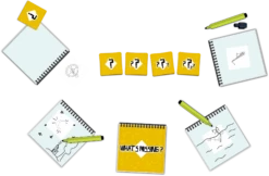 Chaque joueur pioche une carte qu’il garde secrète (utilisant la page supĂ©rieure du livret comme paravent) et la place sous la page plastique transparente dans le sens qu’il souhaite. On peut alors commencer la phase dessin. Il est interdit d’Ă©crire, de copier tout ou partie du dessin de la carte mais nĂ©anmoins, le but est de faire deviner Ă la fin aux autres joueurs, ce qui est prĂ©sent sur cette carte secrète. Quand il ne reste plus qu’un joueur en train de dessiner, les autres comptent Ă rebours de 10 Ă 1. Puis, un par un, les joueurs vont retirer la carte secrète de leur livret puis montrer aux autres, leur dessin. Le premier joueur qui devine ce qu’il y avait sur la carte du joueur actif gagne la carte. Si personne ne devine, le joueur actif doit remettre dans la boite une des cartes qu’il avait gagnĂ©es s’il en a une, plus celle qu’il n’a pas rĂ©ussi Ă faire deviner bien sĂ»r. Le vainqueur sera celui qui aura le plus de cartes Ă la fin de la partie (7 ou nb de tours ou temps de jeu).